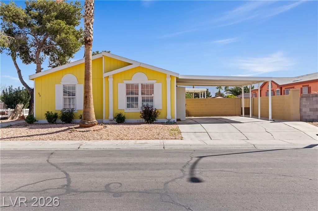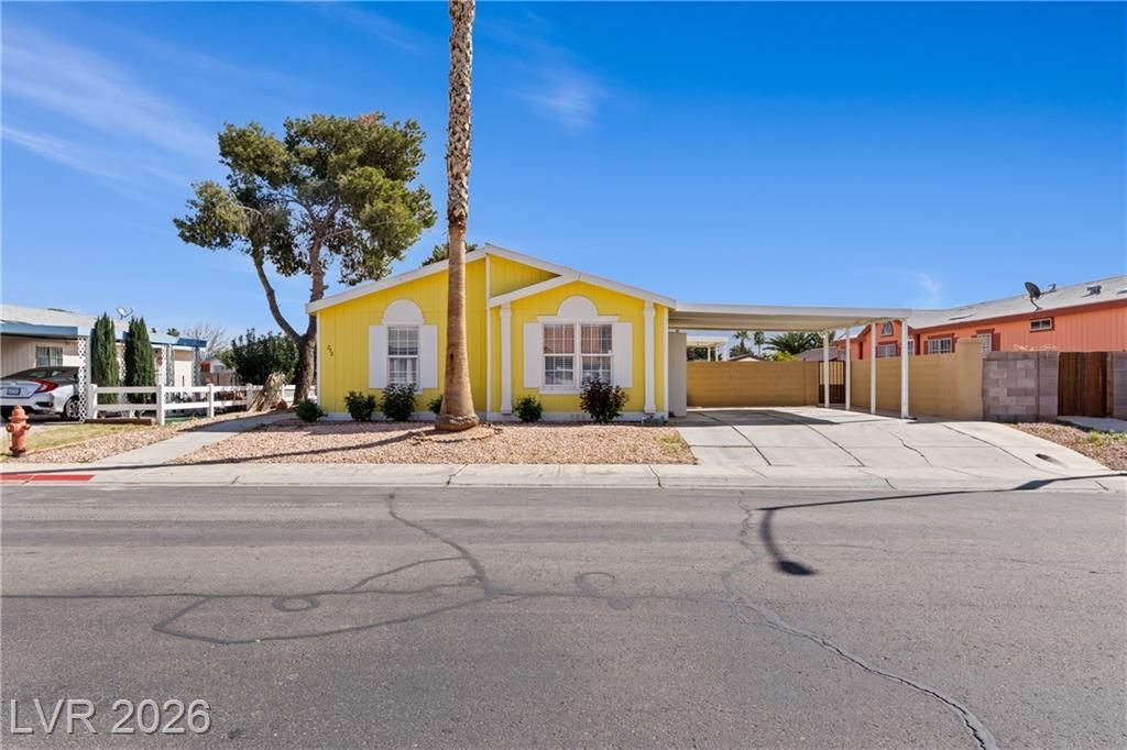 Move-in ready and full of charm! This well-maintained 3-bedroom, 2-bath converted manufactured home offers an open layout with high ceilings and tile flooring throughout. The kitchen, remodeled just a year ago, features white cabinets, ample storage, and appliances that stay. The primary bedroom is private with a large walk-in closet, while the guest bedrooms are spacious and versatile. Step outside to a covered patio and a low-maintenance backyard perfect for relaxing or entertaining. Additional features include blinds, a 3-year-old AC, and a low HOA. Stylish, functional, and thoughtfully designed, this home is ready for its next owner!